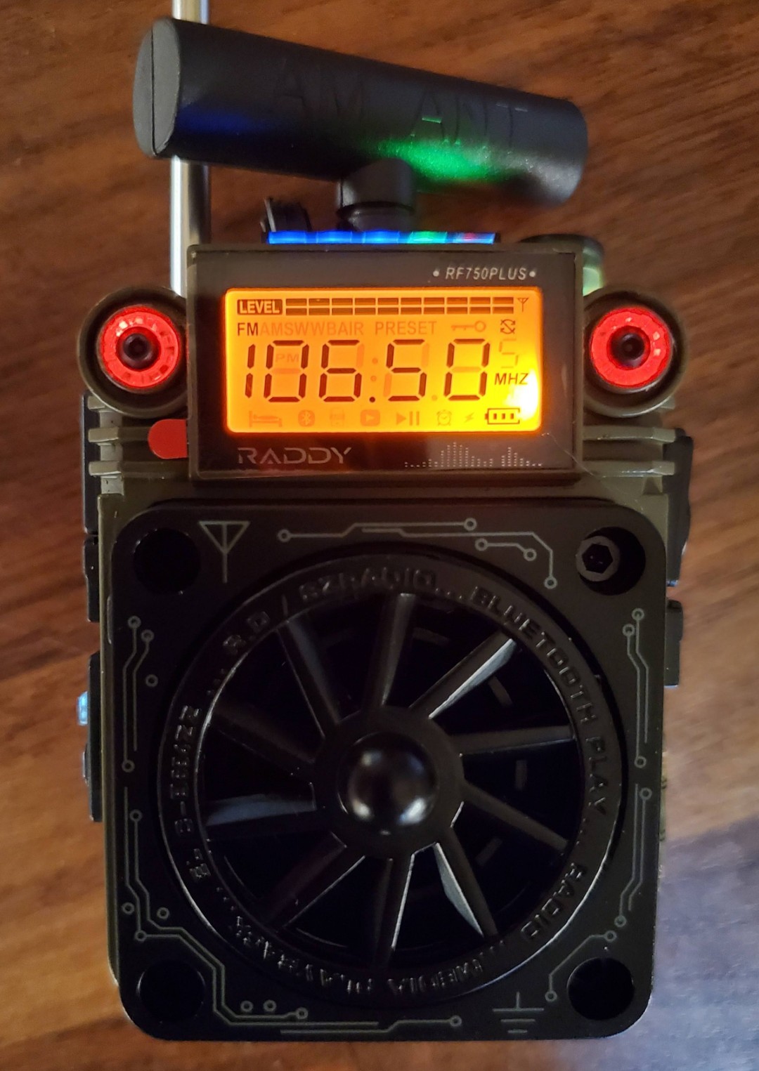 Overview: The Raddy RF919 packs a world of reception into an arrestingly handsome and solid instrument. It not only covers standard FM/MW/LW and SW (including SSB modes) but in addition covers Weather Band, Air Band, a dedicated CB band, VHF from 30 – 250 MHZ and UHF from 250 – 990 MHz with 1600 memories and ATS. It also features unusually complete external antenna inputs and controls which give more user control over antennas than usual. There are two illuminated displays and the buttons are also illuminated. Additionally, the Raddy not only plays audio from SD cards but can also record… a truly useful feature sorely lacking on many SD card-capable radios. There are also 10 EQ settings and Bluetooth playback. The RF919 is clearly aimed at radio enthusiasts who are willing to learn the ins and outs of a receiver which covers more bands and handles more antennas than any radio I have tested previously.