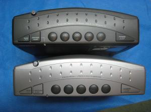 The cabinet for one thing. The “2″ is housed in an identical-looking cabinet as the Plus. This is a sturdy, attractive radio, available in “Titanium” or “Black Mica” colors. It features 5 Preset Station buttons along the top edge, along with the band selector, Weather Alert switch, Power/sleep button and the telescoping rod used for all bands except AM. A large Tuning knob, Volume knob and a Lock switch to prevent accidental activation when packed in luggage and a stereo headphone jack are on the right edge. Pressing the Tuning knob in turns it into a Squelch level set knob for the HAM band. On the back a are a recessed handle, Aux In/Out jacks, a Timer activation jack for an external recorder, such as Crane’s Versa-corder, external AM antenna and ground screws and the battery compartment. The front panel is laid out like the previous model with the aforementioned Light Button, Clock, Timer and Alarm function buttons, Up/Down Tuning buttons, Bass and Treble controls and the large display.