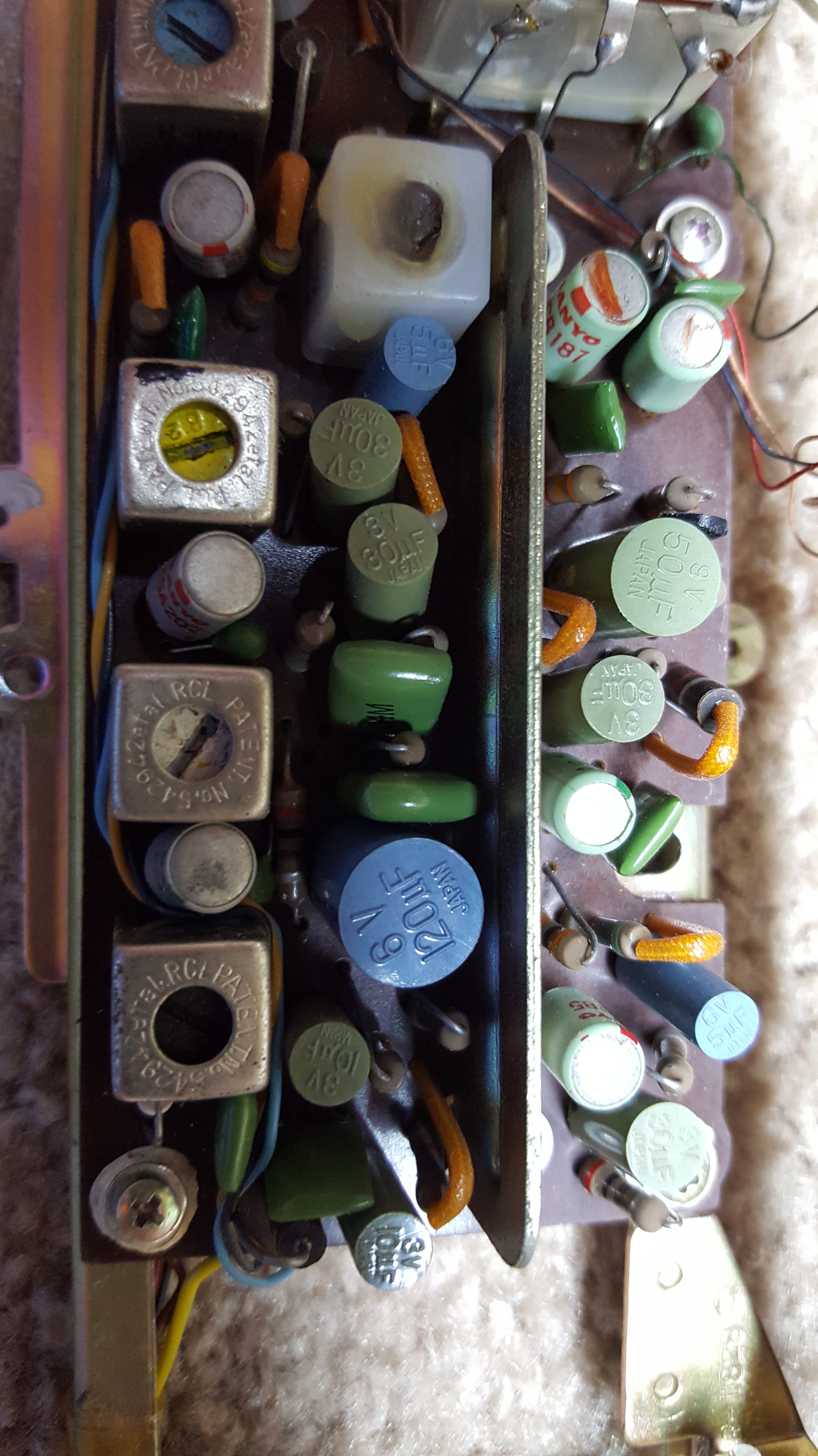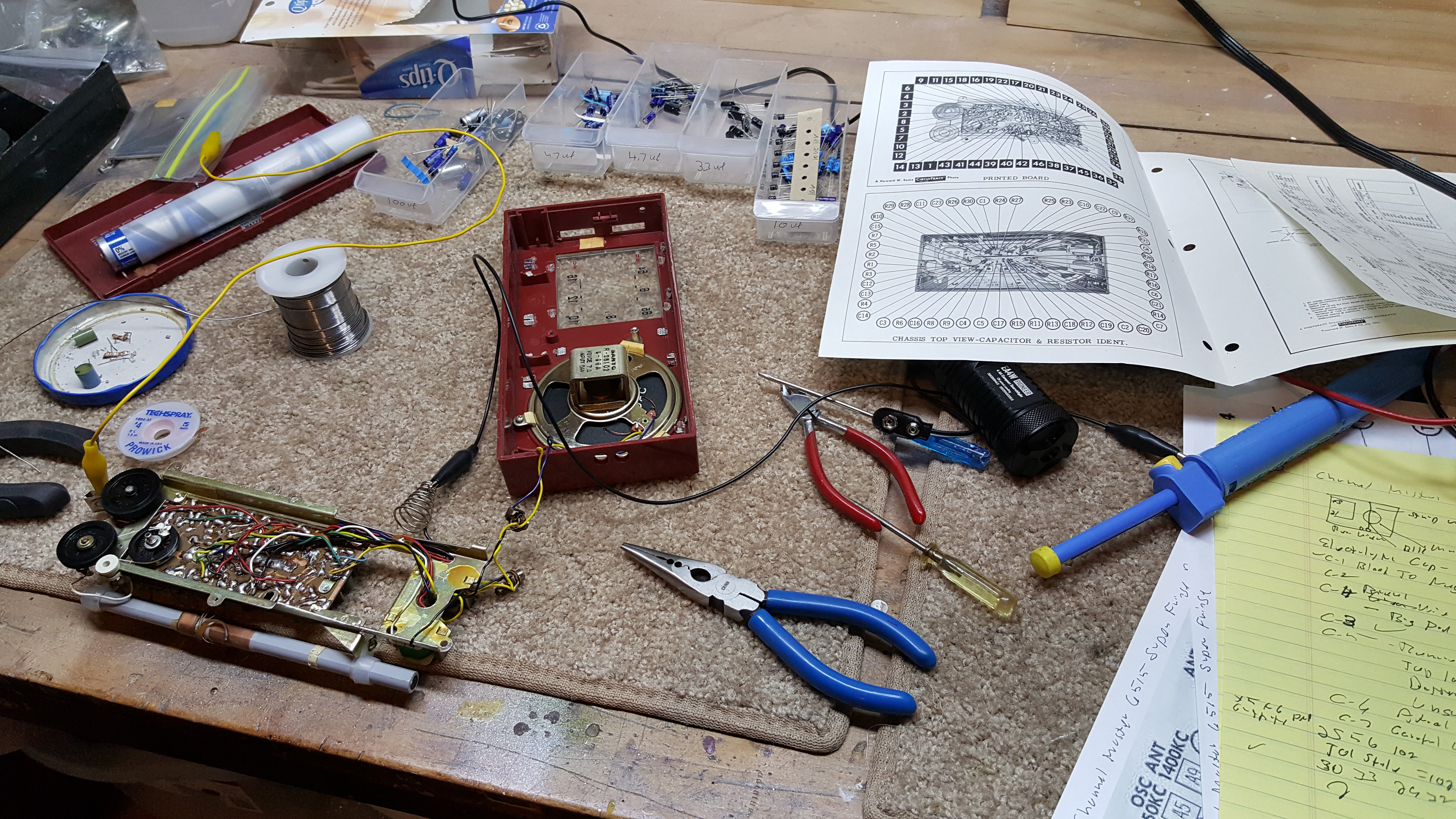 Recapping: Of the several samples I eventually obtained, none worked well or at all as received…they were all in need of new electrolytic capacitors. In fact I have never seen a Channel Master 6515 Super Fringe that worked at all near normally without being fully recapped and unfortunately this is tough in this radio. Construction is very crowded and In particular be aware of a wire which runs across the PCB and has bared spots which “touch down” and connect to some of the caps which you will have to replace. Just be sure to note where they go to reconnect them after the caps have been replaced…initially this gave me a real headache until I figured it out. The Super Fringe contains 10 electrolytic caps and in the several samples I saw they were all bad…the typical AM only portable usually has only 4, and it took some time to properly locate all the solder points on the board. Once recapped and aligned the radios seemed to be working very well and I was ready to put them up against the competition…namely a Zenith Royal 500H, long known as a reference amongst mid-sized AM portables. I eventually put three samples of each radio into the mix (3 Super Fringes and 3 Royal 500H’s) and my results are an average of the three with subtle variations unit to unit which is to be expected.