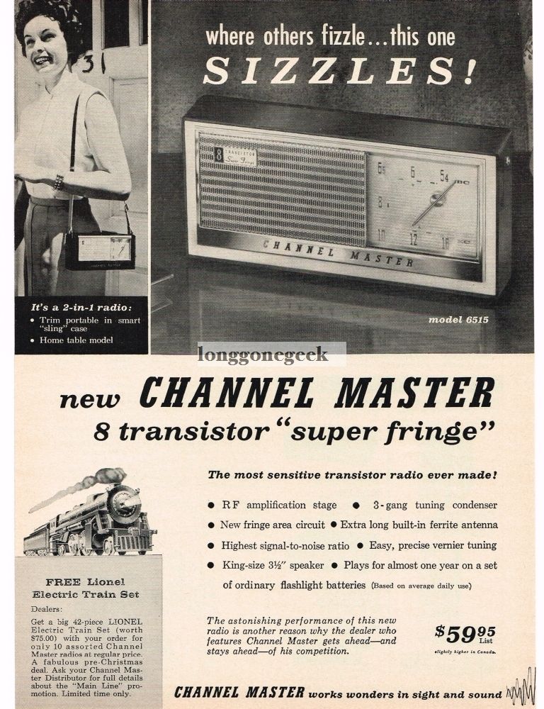 Conclusion: Contrary to their print advertising, the Channel Master 6515 Super Fringe is not “the most sensitive transistor radio ever made” – you only have to look at the Three To Five Star radios on the AM Mega Shootout list to find many that are. However it is one of a handful of portable radios that can compete with the Zenith Royal 500H in the mid-sized class of its era. In terms of both reception and sound it is certainly very different but on balance virtually the equal of that Zenith, with each outpointing the other on certain characteristics, and that is saying quite a lot. And once you see one in person I think you’ll also agree that the 6515 Super Fringe is quite a looker.