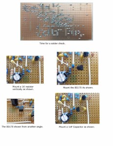The Cuthbert is an unusually easy kit to assemble, due in part to the Component Cards which separate and identify all the small component parts. Every transistor, resistor and capacitor is clearly identified for you so there is no doubt as to which part is which, which greatly simplifies the process. The circuit board itself is an unusual design with a marked grid and matrix of holes through which you insert the component leads and solder…this is really well thought out. With reasonable care, anyone who can carefully solder should have no trouble putting this kit together.