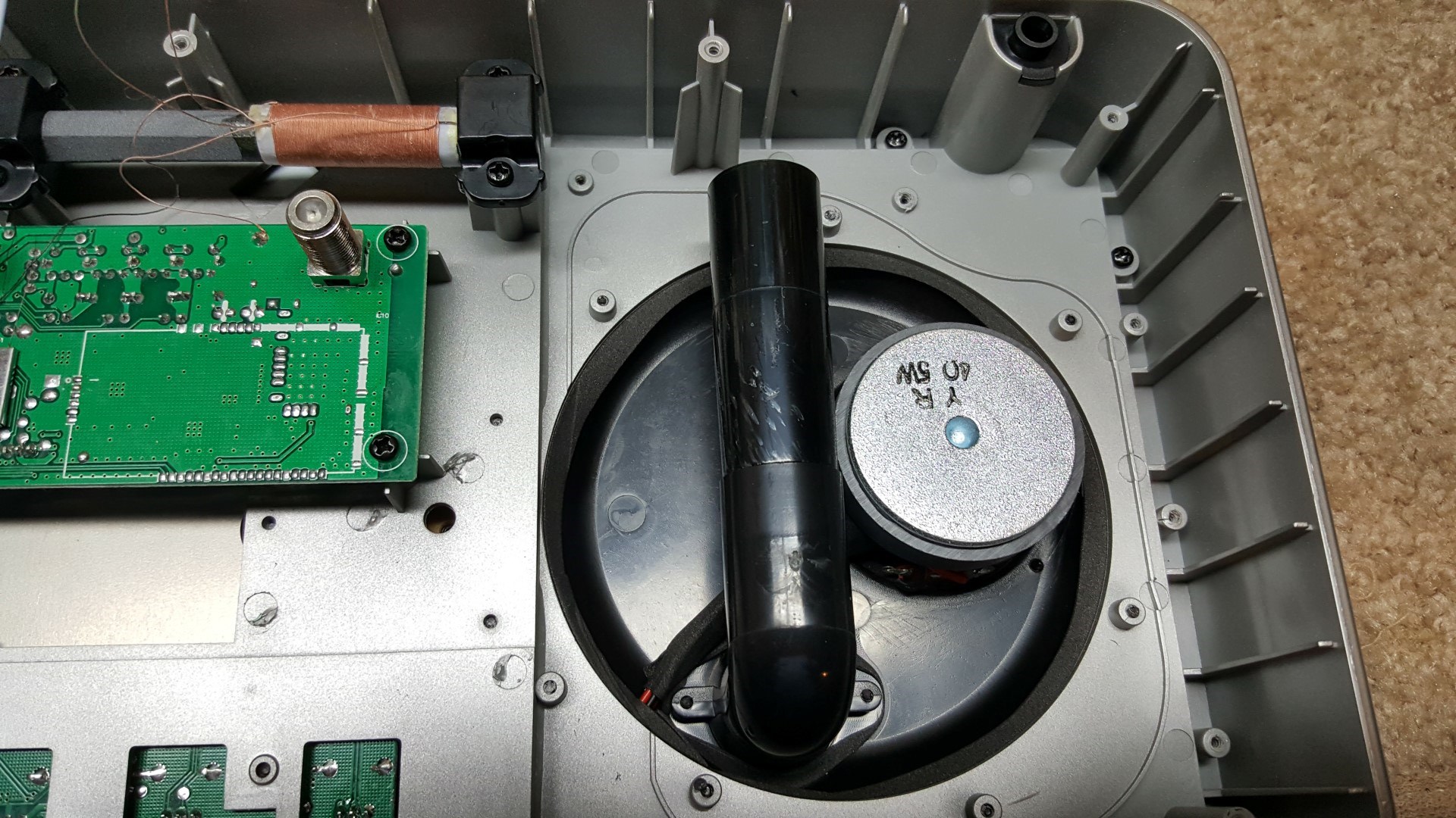 The much-improved speaker makes speaker replacement unnecessary. The box that surrounds this new speaker virtually rules out adding a longer ferrite rod…while an intrepid modder could conceivably cut a hole in that box to allow the longer rod to fit it would probably have to be sealed to keep the speaker properly loaded…I decided against going there since I’m not sure exactly what is inside the large speaker enclosure. Luckily, this new model gets more out of its 6” ferrite rod than the older versions, virtually matching the performance of the original Field 550 with the longer rod added to it. Well done!