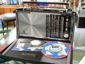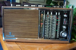 When the radio arrived I was immediately struck by its beauty. This 1969-1971 design was a BIG, HEAVY portable radio measuring 17″ x 8″…hardly the kind of thing you’re likely to lug to the beach. You can move it from room to room fairly easily, but my guess is that most users will find a semi-permanent spot for it.