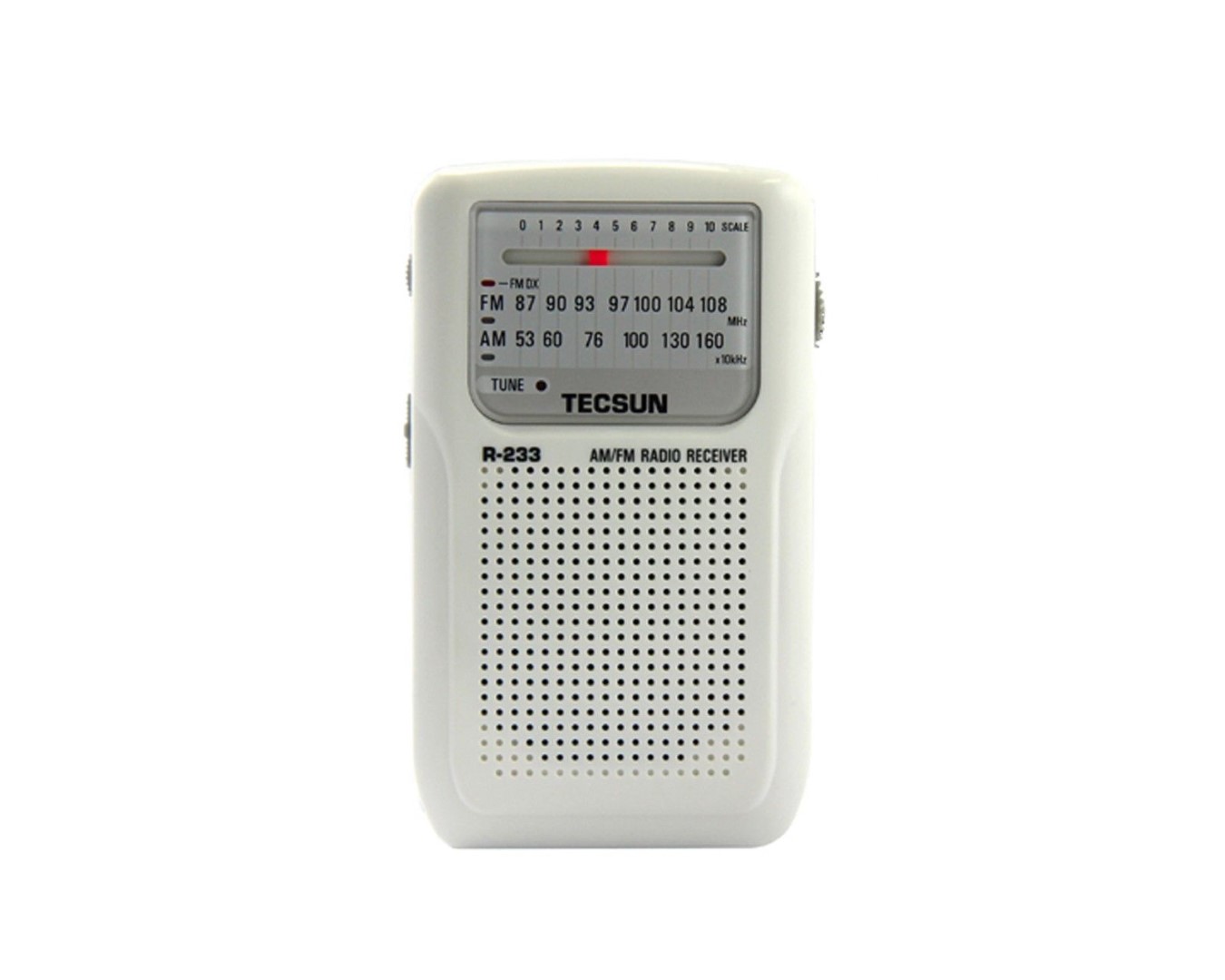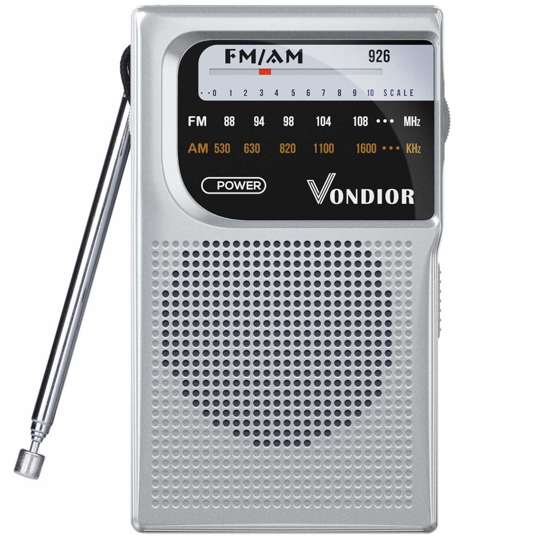 Sony ICF-P26 – $18.00 http://amzn.to/2biruvn Average AM/FM reception and audio. Has the Expanded AM band and a Tune LED.