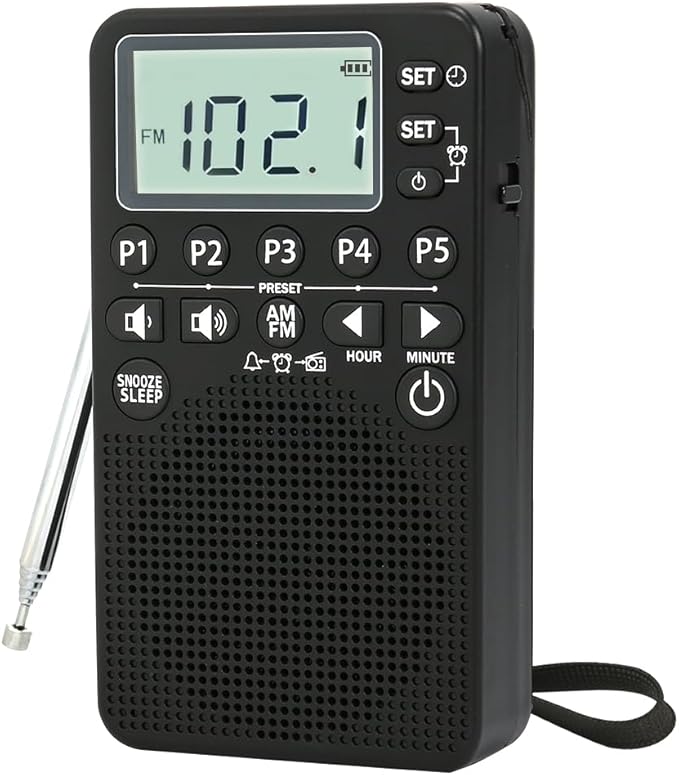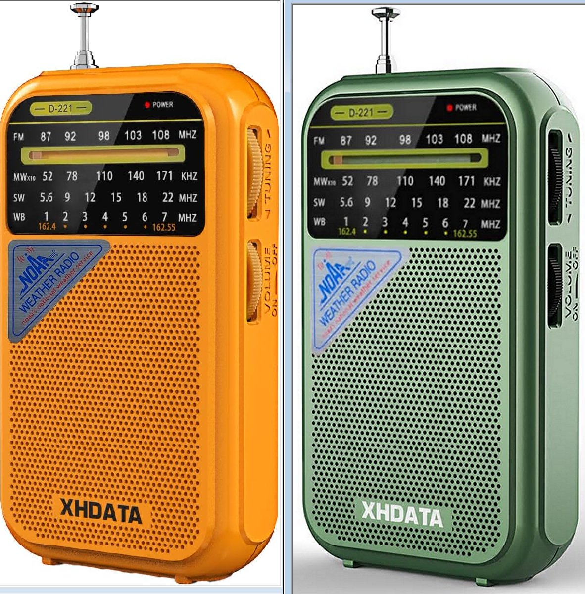 The Retekess PR15 has been around for a few years. Features NOAA Weather Band – One of the smallest speaker-type radios which you can actually stick in a pocket…cool little radio. FM & Weather band work with either the whip or earbud cable…an unusual feature for a mono FM mini portable.