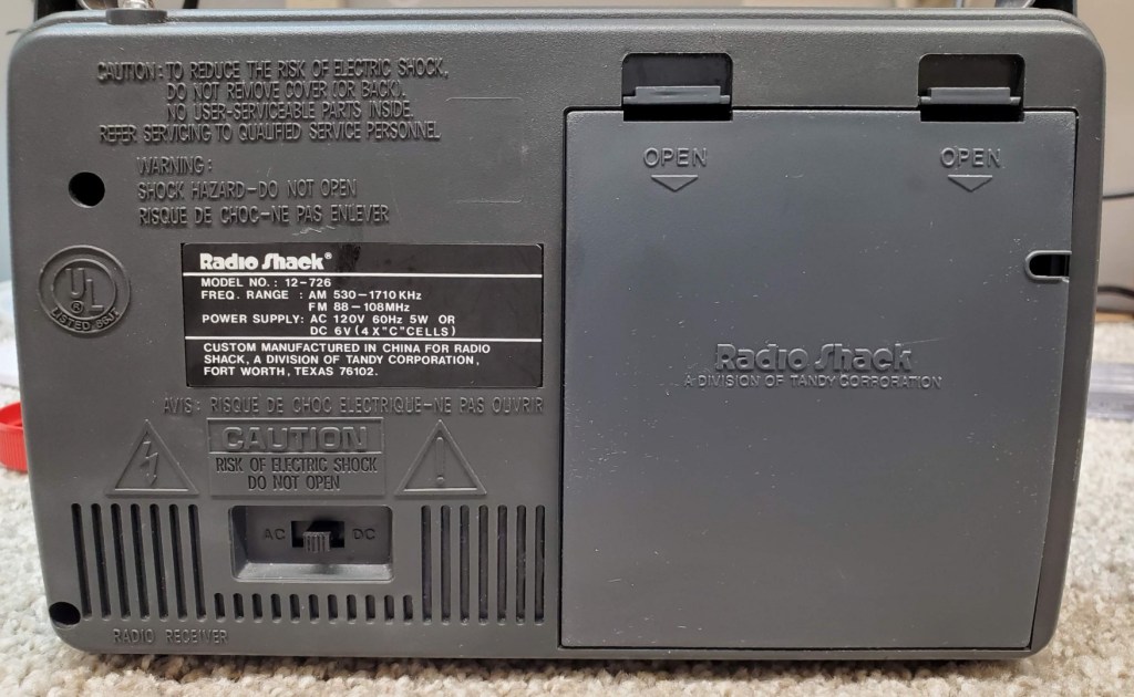 The Radio Shack 12-726 is one of many seemingly pedestrian portables Radio Shack offered over the years. At the time these were current I had little interest in them, assuming they were mediocre performers bought by people who were not radio nuts like me and not in the same league as some of the sexier radios then being offered by companies like Sony, Panasonic, Toshiba, Channel Master, Zenith and others. Lately however I’ve become more interested in old-school AM or AM/FM analog radios and curious to see how they perform compared with the best portables of the day as well as some of today’s digital radios. First, a bit of history.