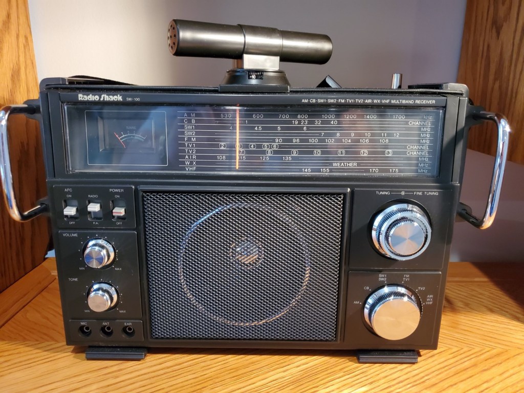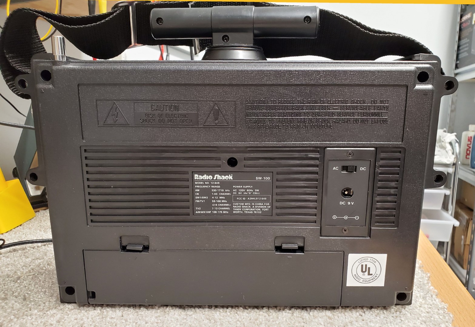 Conclusion: In today’s world the Radio Shack SW-100 shows its age with outdated band coverage and lackluster FM and VHF performance. On the other hand, it offers very good AM performance with a nice analog tuning feel, that nifty rotating AM antenna and pleasant audio. It’s a very nice AM radio and I will definitely take it out for a spin now and then. It is also well made – my little-used sample is still pretty well aligned and other than that sticking meter seems ready to go for another 30 years. It was an interesting look back in time and it certainly is a very nice display radio. I thank the reader who donated it to me!