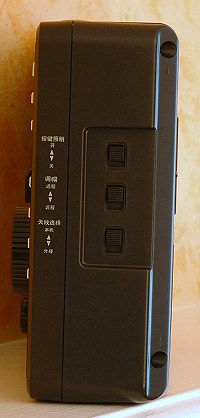 On the top panel are a Light Switch (which can turn the lights on for 8 seconds or lock them on) and a Snooze Bar. Pressing the Snooze bar with the radio off defeats the Key Beep feature. (An undocumented feature is that the end of band beep can be defeated by pressing the Alarm Button with the radio off. This trick works on my CC-SW but not on my Redsun RP-2100). It may work on more recent versions of the Redsun.