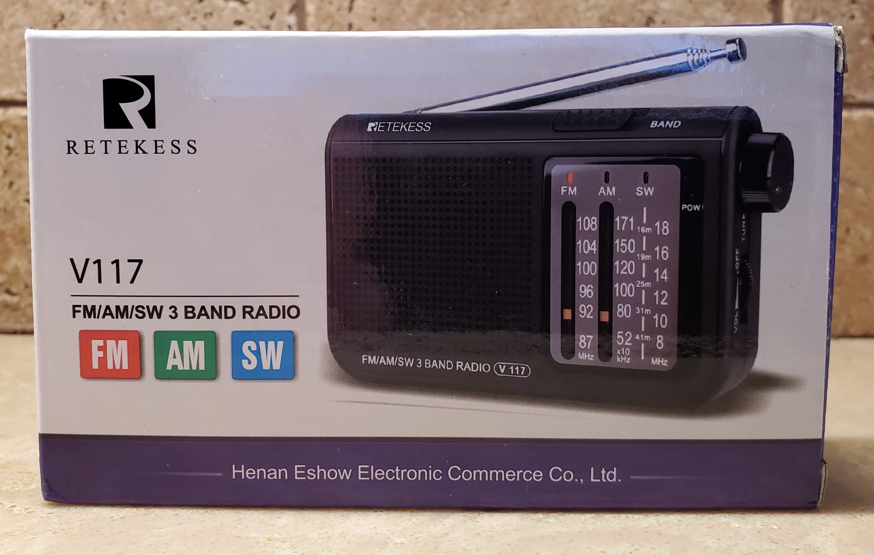 The Retekess V117 Is a no-frills portable that has been around for a while. Although it has a SW band, I consider this to be primarily an AM/FM radio, at least here in the US where its SW band coverage is a limitation to its usefulness. But it’s not bad for the price on AM and FM. More on that later.