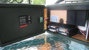 In a word…very nicely indeed. Although not a boombox by any means the sound is pleasant and well balanced…perhaps “polite” as the British might say. It also has good volume, not a surprise given the solid wooden cabinet and 800 mw audio power. The two position tone switch is helpful as well but I could wish for just a bit more crispness in the High position on AM. There is an unusual internal duct about an inch in diameter running front to back…this is to vent the cabinet to augment bass response and eliminate cabinet rattles. Most radios have air vents on the back for this purpose, but with its solid leather-covered back Roberts found an innovative way to vent the cabinet via the front grill with the use of this duct…very clever indeed!