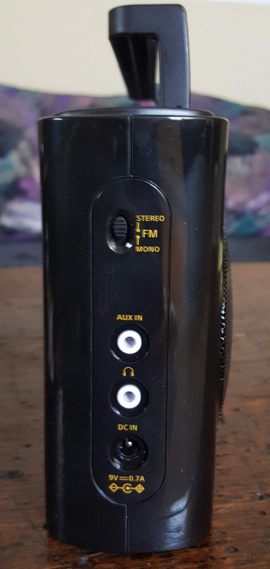 FM Stereo is of course a bit limited due to the close speaker spacing of such FM stereo portables but still, when nearby the stereo effect was great, and the dedicated Stereo/Mono slide switch on the left side of the radio was very easy to use…again, no menus needed. Sound through earbuds was excellent as well.