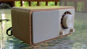 The good folks at Sangean US sent me one of their newest goodies a few weeks ago, the little WR-7 and I haven’t wanted to put it down since I opened the box. When I saw the brochure, I didn’t appreciate how tiny this unit is but its high-tech speaker will amaze you with how much powerful sound it can pour out. Available in Walnut or Dark Cherry the WR-7 has a fullness of sound that belies its small size and I find myself marveling at how well I can hear the bass lines of my favorite songs. Of course, no tiny radio can pump out the kind of real bass a larger speaker can – the laws of physics haven’t changed, but the quantity and overall balance of audio Sangean has achieved with this clever speaker design will absolutely surprise and delight you.