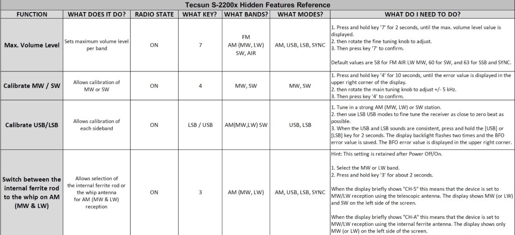 Everything is very intuitive and familiar as the S-2200x follows most of the conventions of other recent Tecsuns. First there is the now-familiar Hidden Features List provided by anon-co.com: