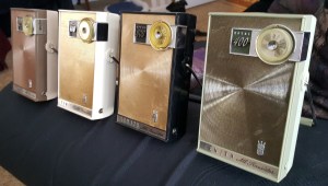(Far Left) Mostly vintage AM-only portables from the 50’s & 60’s.