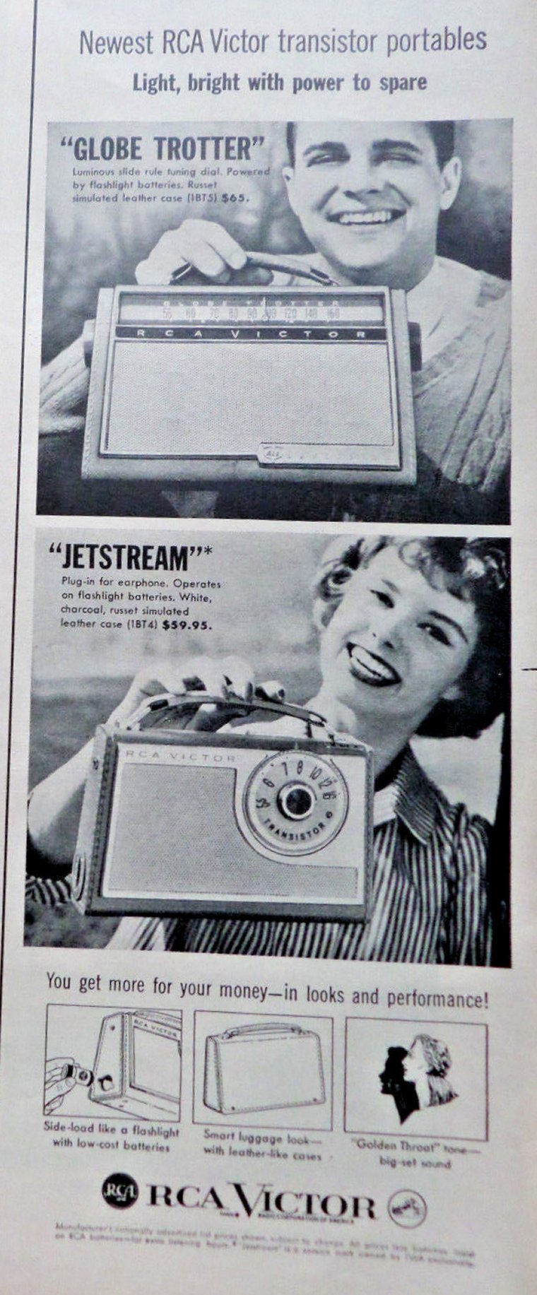 The Globe Trotter series of radios is also unusual in that it originally ran the gamut of console, table and portable tube and solid-state models with band configurations ranging from AM-only to sophisticated multi-band radios. Later on, in the tube era and continuing into the transistor models, the name continued to be applied to RCA’s best performing AM portable radios.