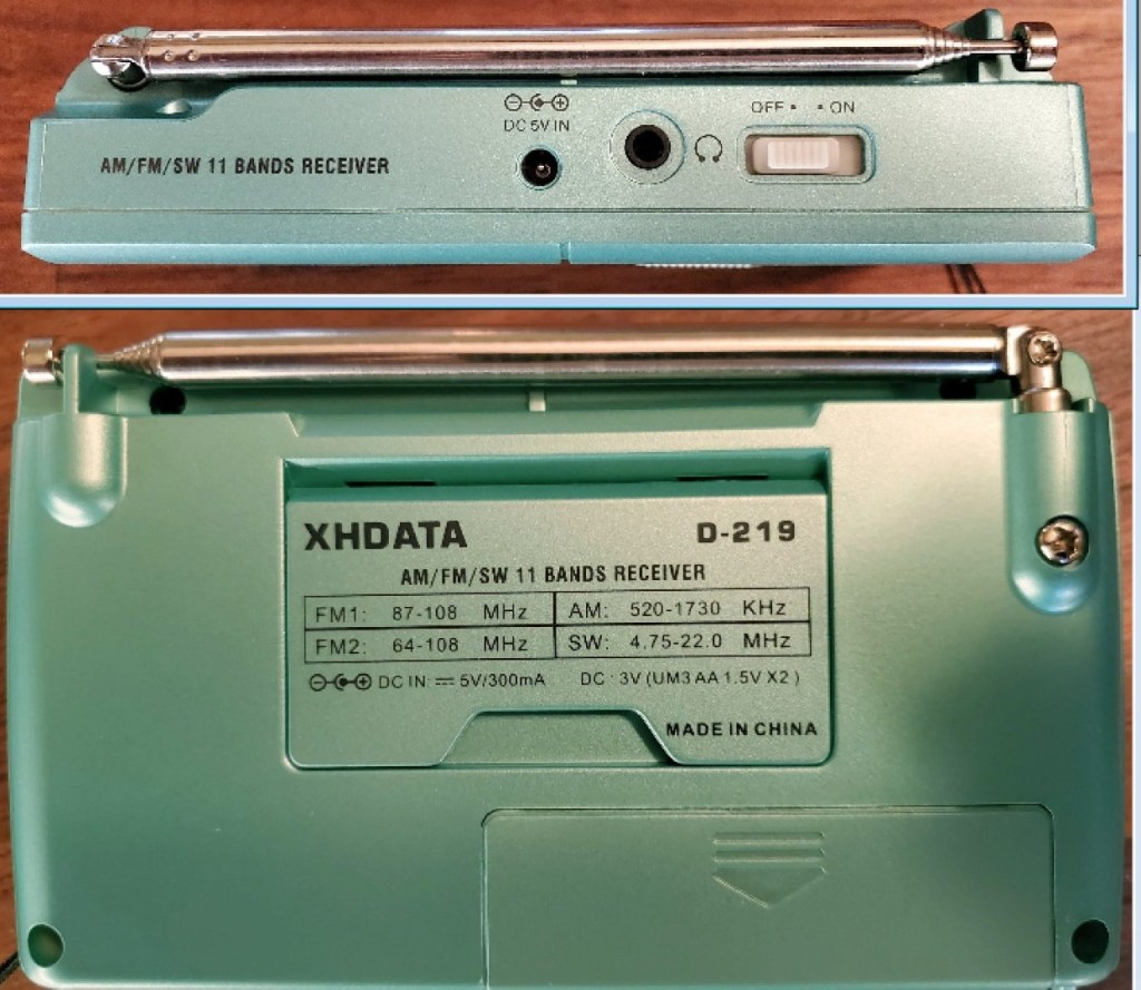 OK. So assuming you have the correct version how does the D-219 stack up? For an entry level radio, I wasn’t expecting cutting edge performance but I’ve got to say that the use of DSP technology has once again raised the bar in performance even in a $20 radio. Other recent models have already shown us the possibilities and the D-219 is a great performer when compared with older, very familiar all-analog models such as the long-time favorites Kaito WRX911, Tecsun R9012, Sangean SG-711L and my Emerson PSW4010 which is a rebadged Sangean SG-789a. I found that the D-219 compares very favorably with the small, vintage analog compacts I compared it with. The D-219 clearly outperformed those radios sometimes by large margin, sometimes more subtly. The only ways in which the vintage radios were nicer is their smooth tuning behavior. As on most analog-style DSP radios, tuning across stations on the D-219 is slightly complicated by those false peaks on either side of the desired frequency, but once you find the correct frequency the reception is generally stronger and clearer than the vintage all analog radios and dial calibration is generally better as well. (Almost all analog-style DSP radios have these false peaks and I might suggest the manufacturers might be able to do what C. Crane eventually did with their very high-quality EP-Pro. When that radio was first released it had the same false peaks which made tuning more cumbersome, but they eventually adopted 9K or 10 K tuning steps so whenever you hear a station you are sure it is perfectly tuned, like on a car radio. You could argue that you can’t deliberately tune off -center but for pocket radios like the XHDATA D-219 it seems it would be more desirable if the chip can be programmed that way…maybe it’s not possible with all DSP chips).