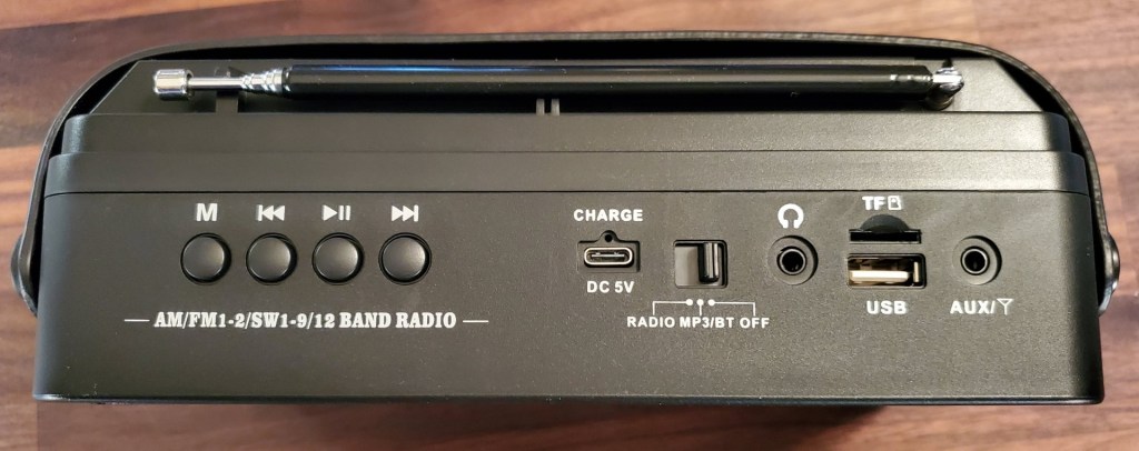 There are some errors in the specifications; the specified AM band coverage is 520 – 1620 which is also imprinted on the rear of the radio but my radio’s dial goes up to 1730 KHz. The listing also says the radio has a built-in AC power supply but mine does not, although looking in the battery compartment there is an empty slot labeled AC 120 – 240 – evidently that option has been deleted, at least from the US import version…there may be other versions in other areas.